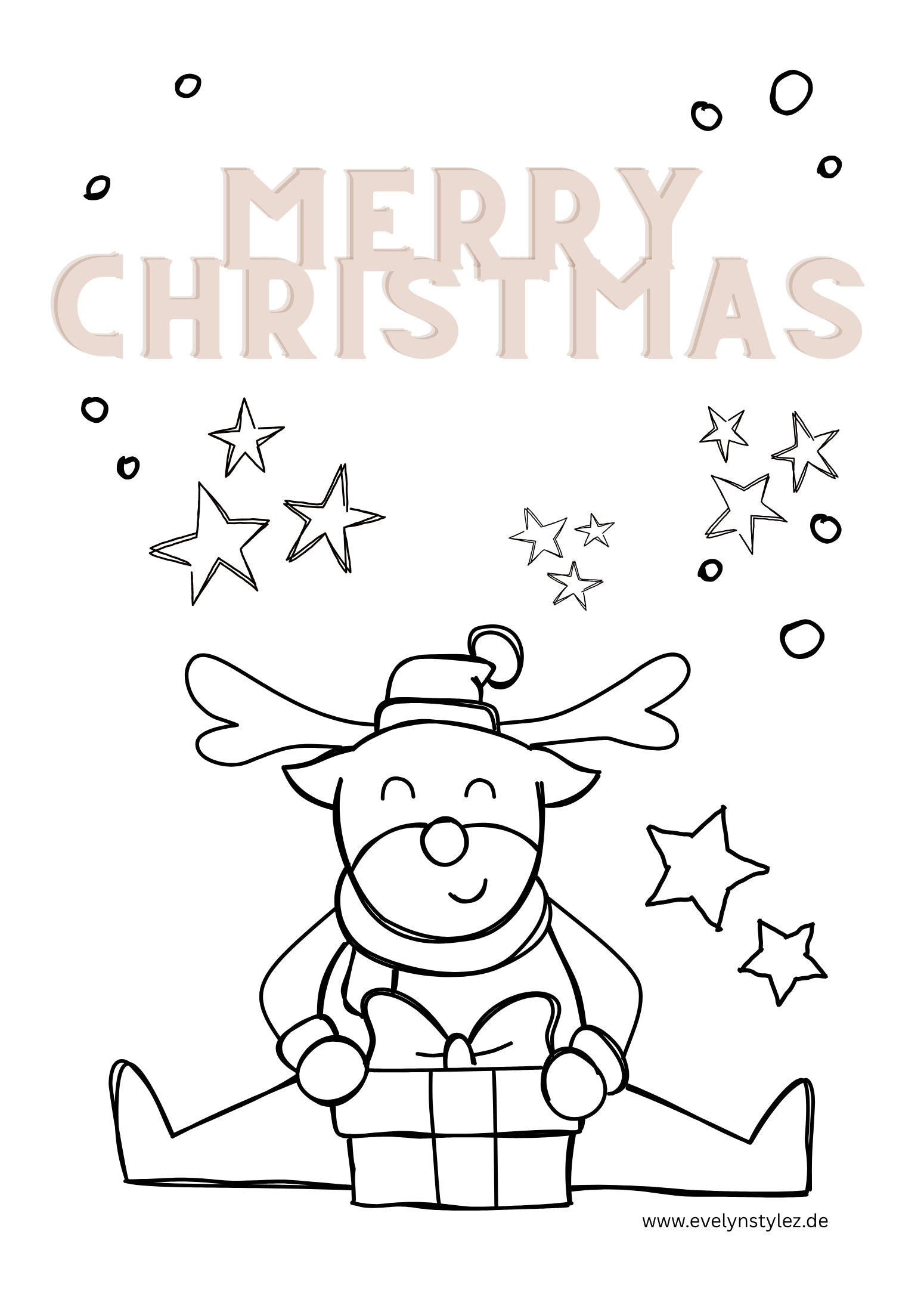 This “Merry Christmas” coloring page with a cute reindeer and present brings instant holiday vibes to your table